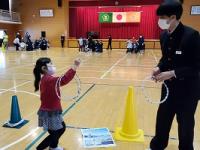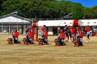 赤月と白日にわかれての応援合戦。中学最高学年の3年生が、小学校最高学年の小学6年生へ応援の指導です!