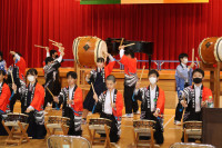 「水軍太鼓」は地域の方々から継続的に御指導いただいています。伝統を受け継いで、1年生も少