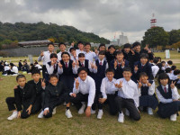 綱引きの後は、「応援合戦」の練習をしました。中学校のお兄さんやお姉さんに一生懸命に付い