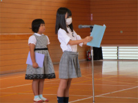 生徒総会では、生徒会長挨拶、生徒会幹事から生徒会全校目標の説明の後、各専門委員会から2学期の活動報告と3学期への引継ぎ事項の発表がありました。